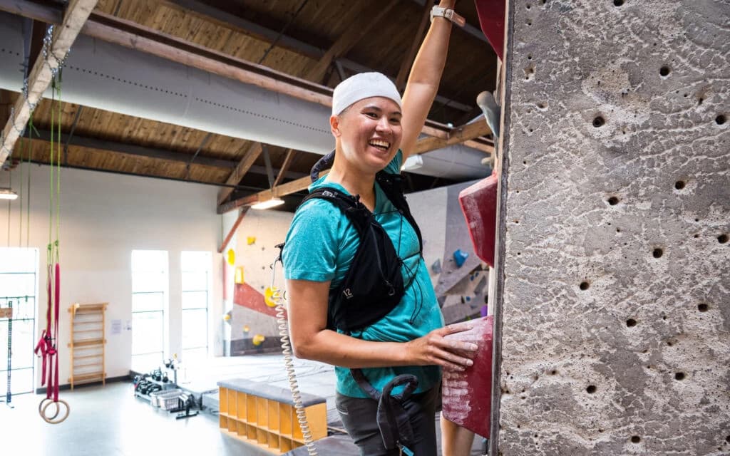 Jovan is grateful that her GBM diagnosis has not kept her from doing the physical activities she loves, including rock climbing at a local gym.