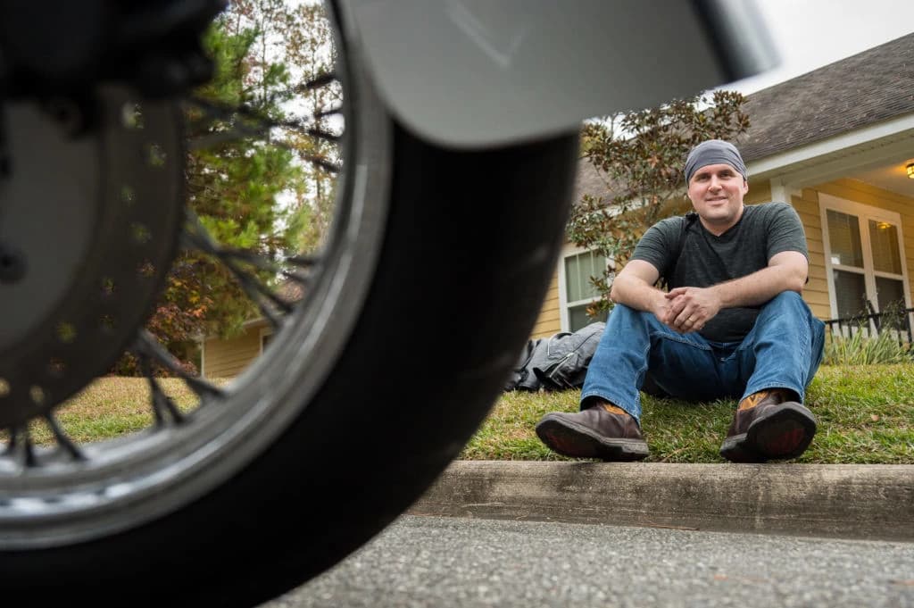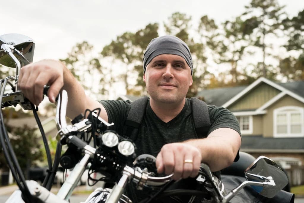 Justin only rides his motorcycle on days when he’s feeling mentally and physically well.