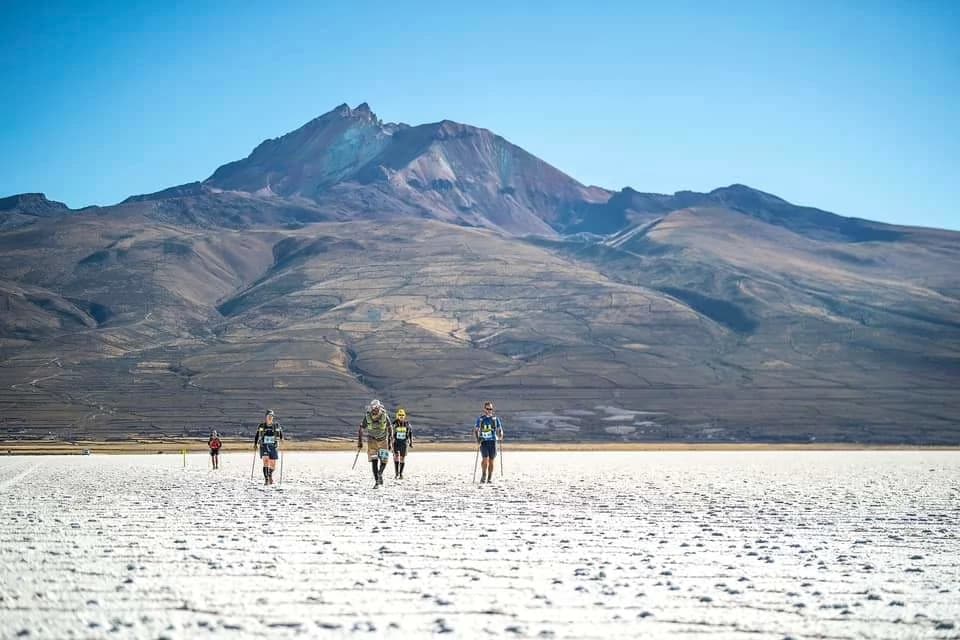 During the 7-day run, Joe had to conserve his energy for a total ascent of 2400 meters (7874 feet). He had to be self-sufficient, so he carried his food and his tent with him, as he and his competitors crossed salt lakes and volcanoes on the Bolivian Altiplano.