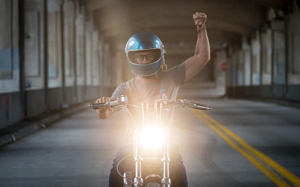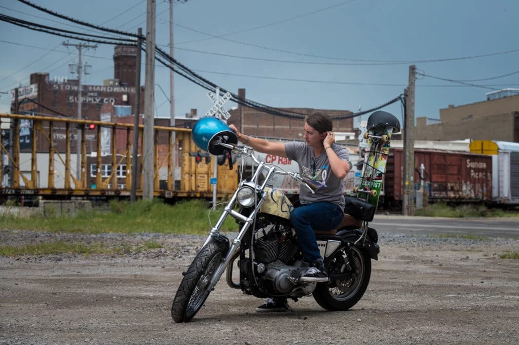 Erin got D.J. a new motorcycle and threw him a surprise party one year after his GBM diagnosis. He’s pictured here in the West Bottoms area of Kansas City.