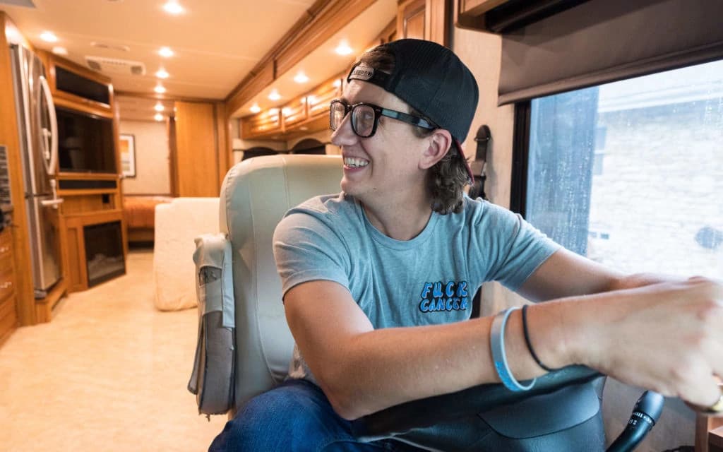 D.J. is excited to travel the country in his motorhome and help other brain cancer survivors tell their stories.