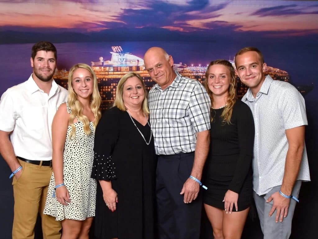 Shelly and Gary Zaugg, center, are pictured here on a Caribbean cruise with their son-in-law Tyler and daughter Dorothy (far left) and kids, Grace and Nick (far right).