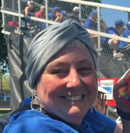 That to-do list included chemotherapy, radiation and Tumor Treating Fields (TTFields) therapy. TTFields therapy is delivered through a portable device with adhesive patches that, when applied to a patient’s scalp, deliver electromagnetic fields to the tumor. The battery-powered system works best when worn at least 75% of the time, so Shelly has gotten used to sleeping in it, driving in it and, of course, wearing it to her daughter’s softball games. (She’s strategic about where she sits, and she makes sure to bring an umbrella on sunny days since the device can’t get too hot.)