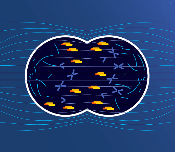 TTFields push polar organelles and macromolecules (a process called dielectrophoresis) to the bridge between the forming daughter cells, where - due to the hourglass shape - TTFields intensity is highest.4,5